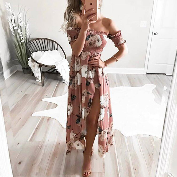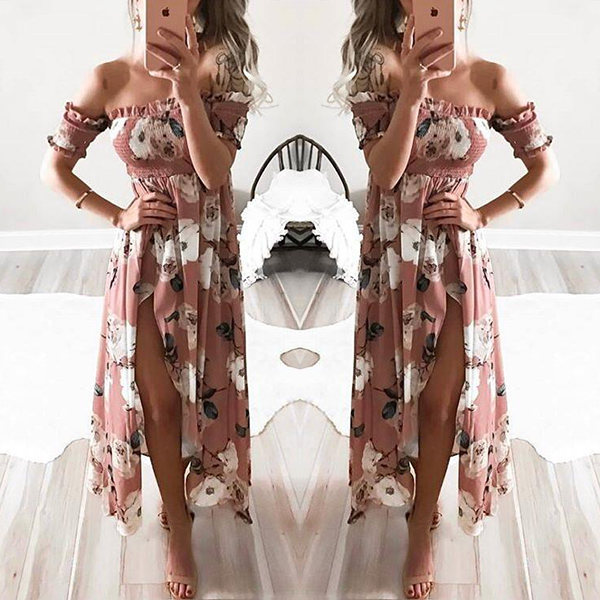 designed with an off-shoulder wide neckline and slit hem,sexy and appealing. On the sunny days,it would be more perfect if