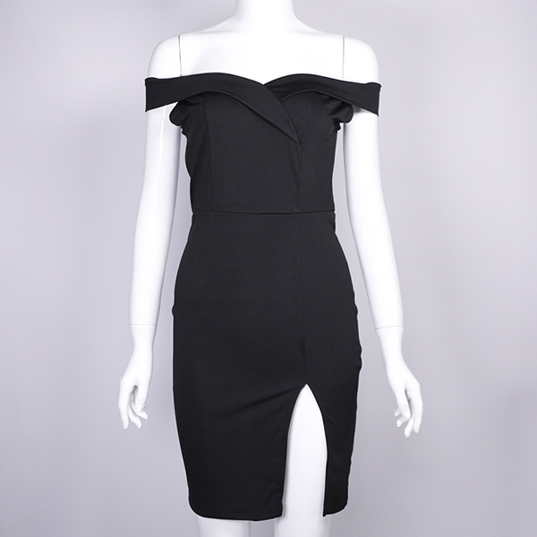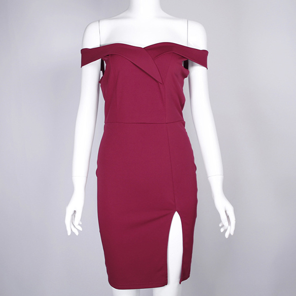 Solid color style,the off-shoulder boat neck,slit hem and fit silhouette design can showcase alluring side