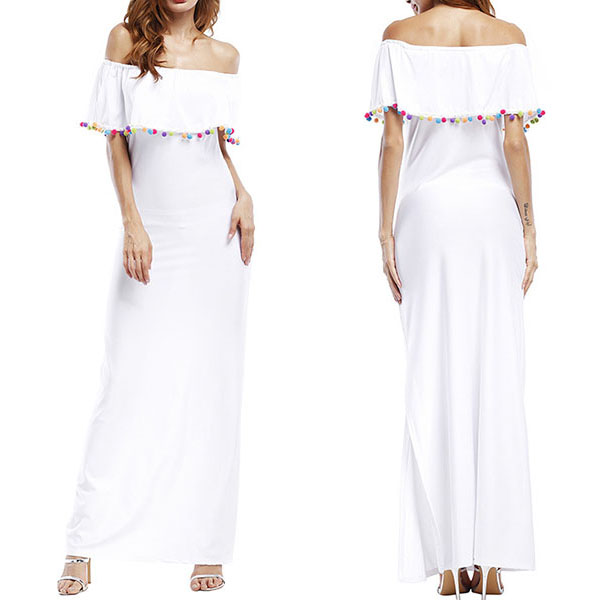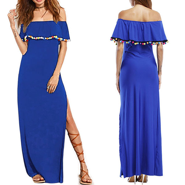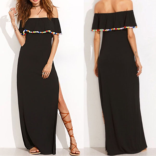 The off-shoulder boat neck and slit hem design will give you a sexier look,while the colorful hairball