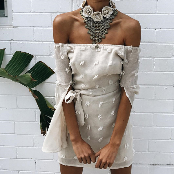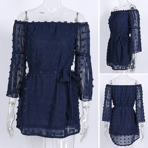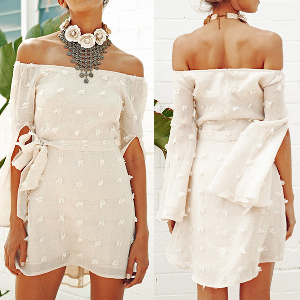 You can win more eyes as long as you slip into this dress. Solid color style,its trumpet sleeve with slit design,off-shoulder wide