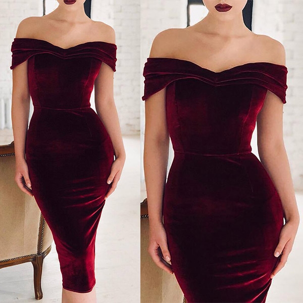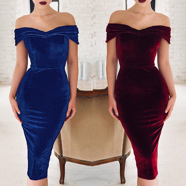 with this sexy and elegant dress. Boasts a solid color,the off-shoulder boat neck design can offer you a