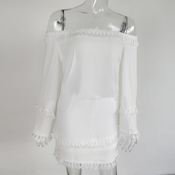 When having a dating with your boyfriend,you can dress yourself up with this two-piece set. Including an off-shoulder boat