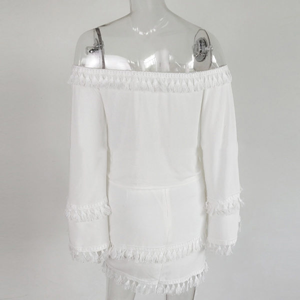neck trumpet sleeve crop top and a high waist skirt,with tassel details make it look more appealing. I promise you can arouse
