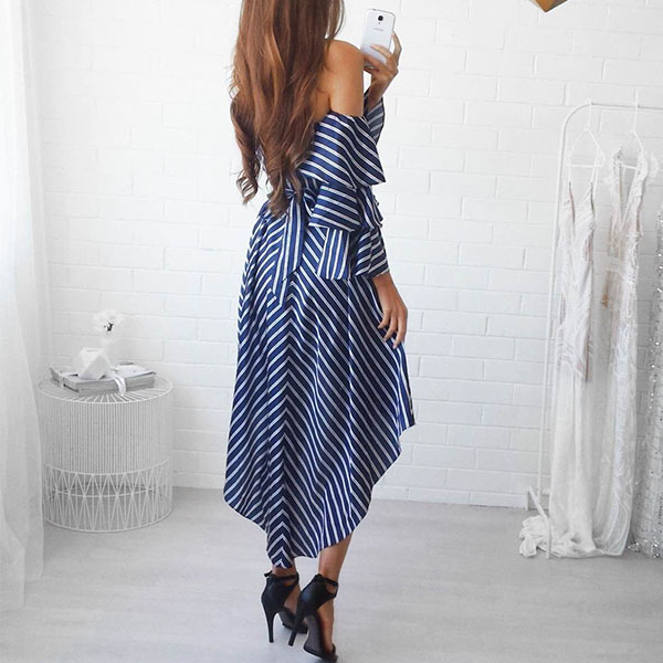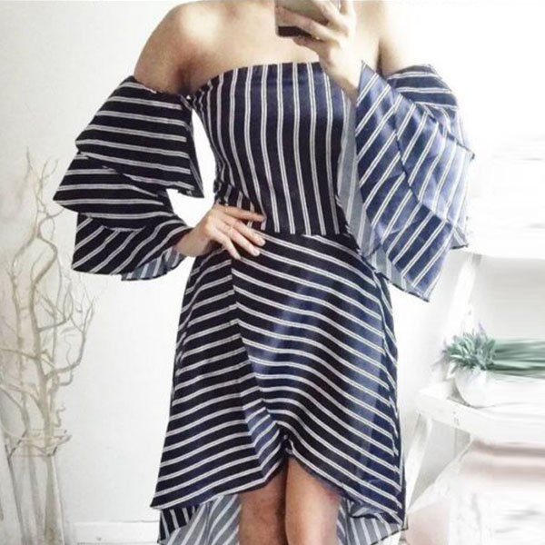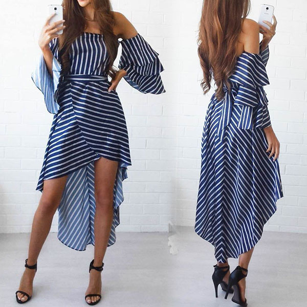 You would have a happy and memorable dating night if you choose this dress. Striped style,accompanied with an