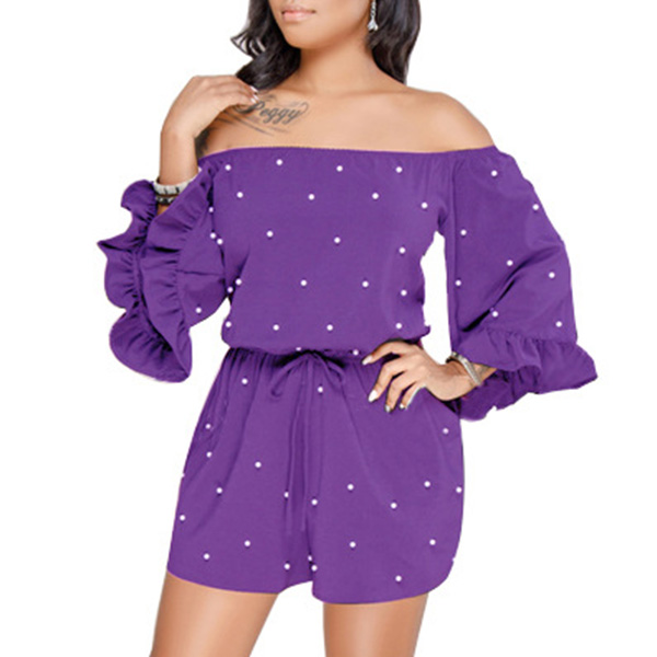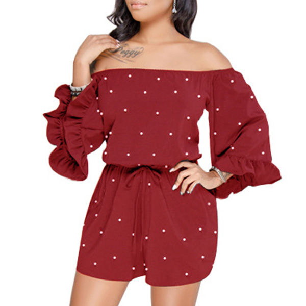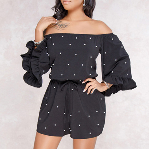you this romper! The off-shoulder boat neck and trumpet sleeve design make it look so sexy,and the high