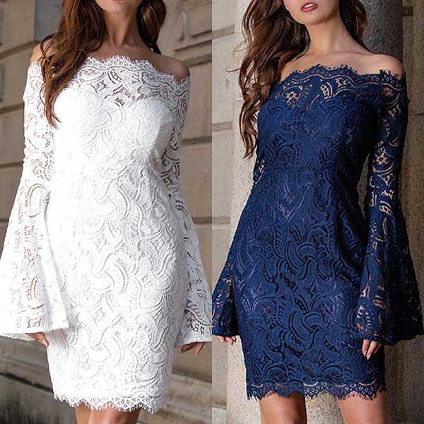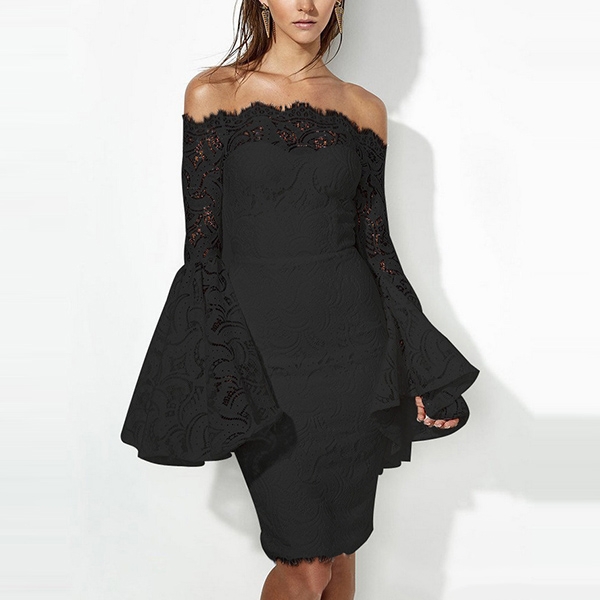 It is difficult not to be the focus when you wear this sexy lace dress. It is finished with trumpet sleeve,