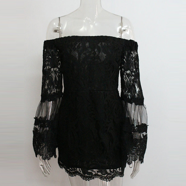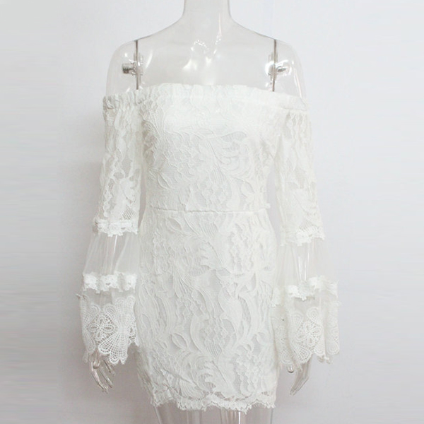 Be a charming and beautiful lady in this lace dress! It is finished with trumpet sleeve,off-shoulder wide neckline and a