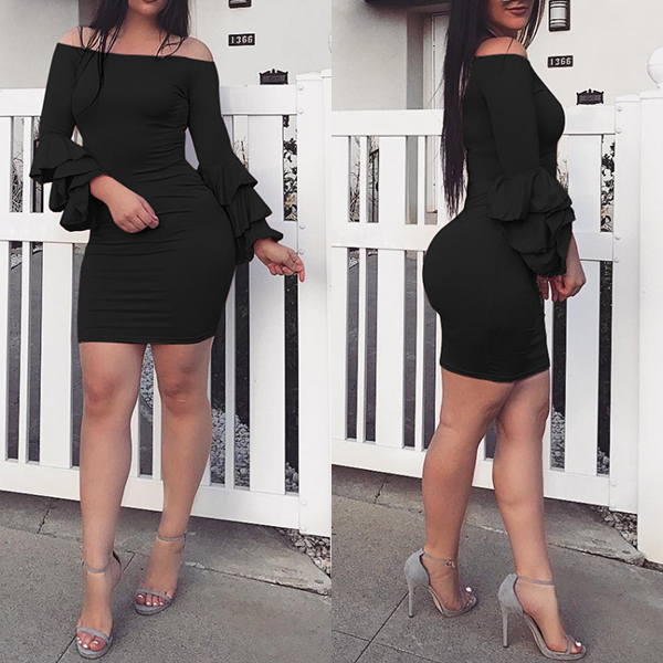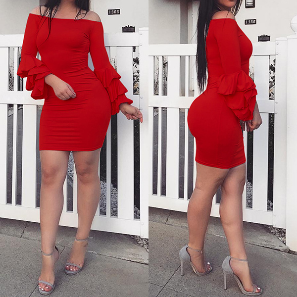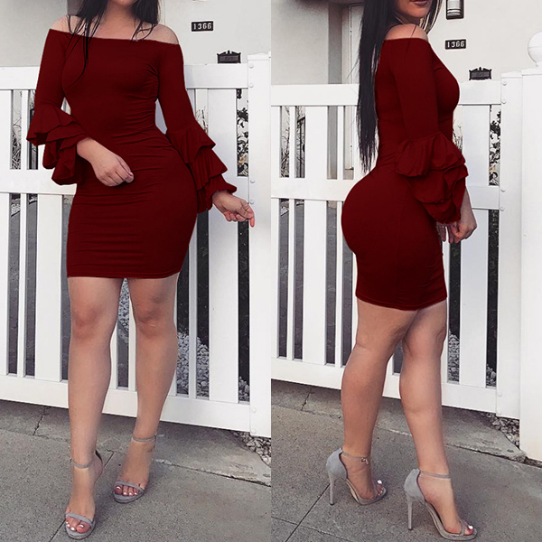 wide neckline and trumpet sleeve design make this piece look so alluring and sexy. For some fancy events like