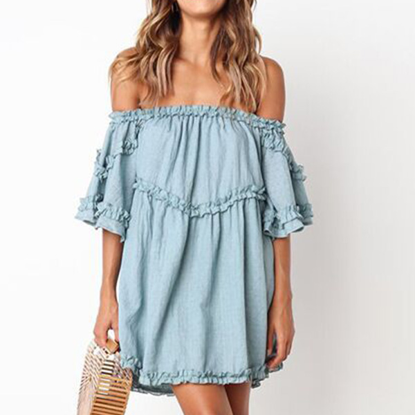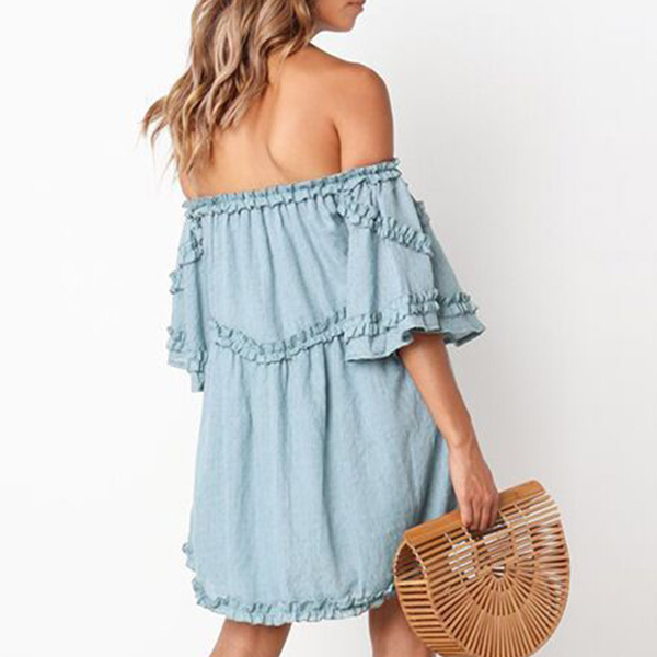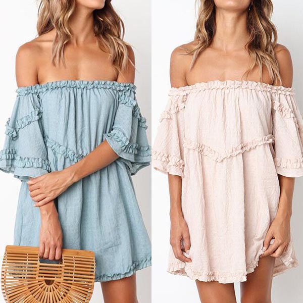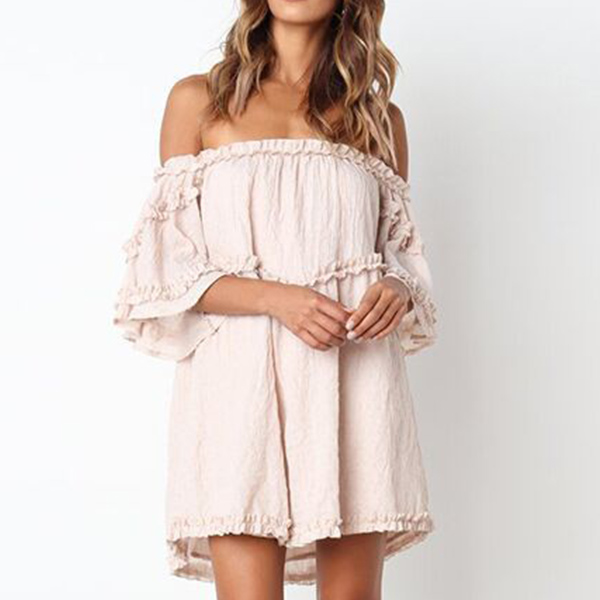 the off-shoulder boat neck and trumpet sleeve design can lend you a more charming look.