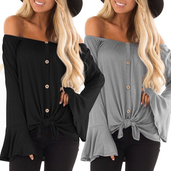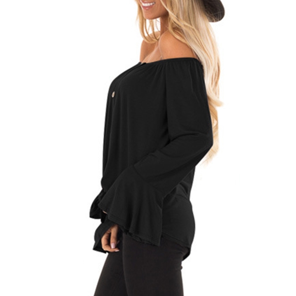 Exude your sexy and feminine side through this top. The off-shoulder boat neck and trumpet sleeve