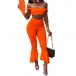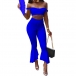 including an off-shoulder crop top and a high waist flared pants,this two-piece set can showcase your