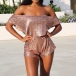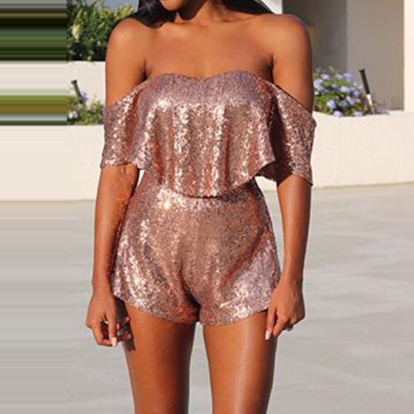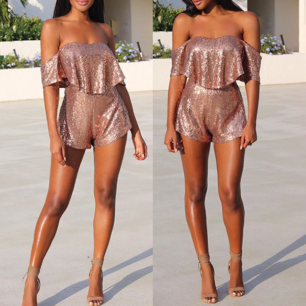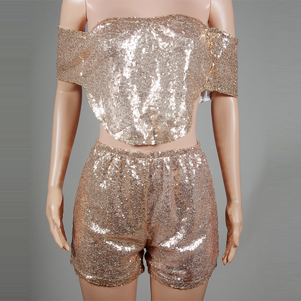 crop top and a high waist shorts,this two-piece set is a good way to showcase your seductive curve. Sequin details make