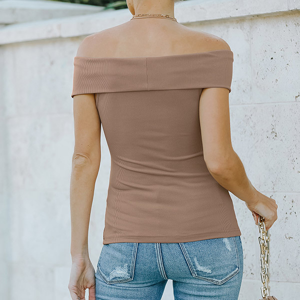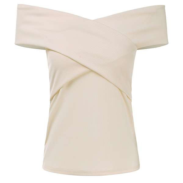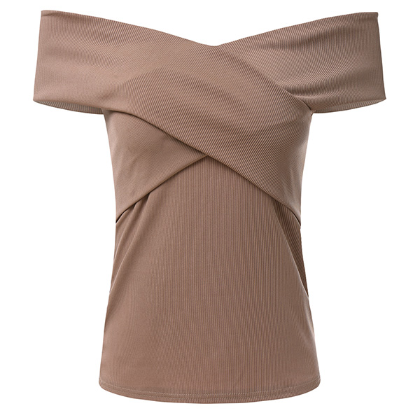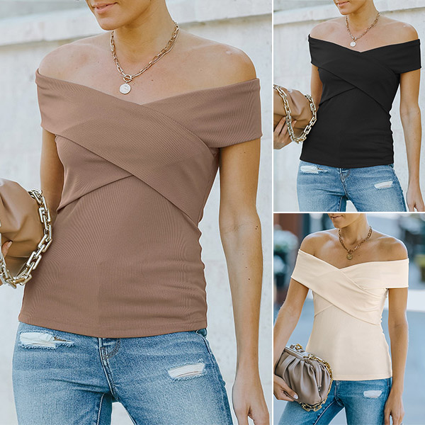 You can keep cozy yet feminine in this t-shirt. So why not introduce this wonderful piece into your smart ensemble?Solid color style,the off-shoulder and crossover v-neck design will boost its charm. Of course you can add astunning choker necklace if you wanna look more beautiful!