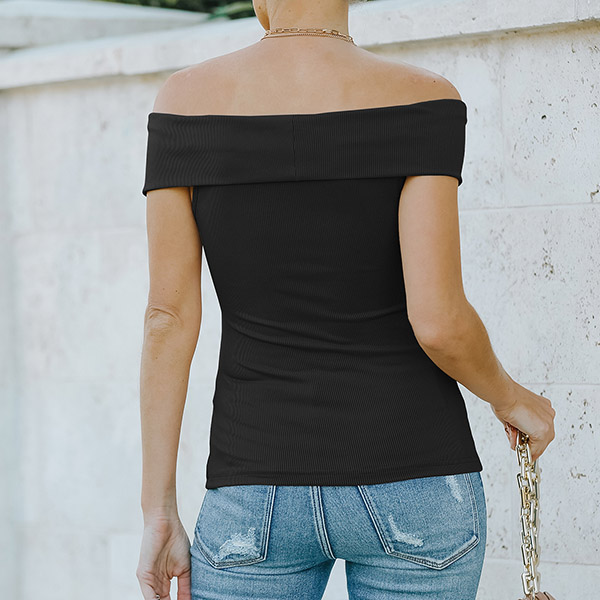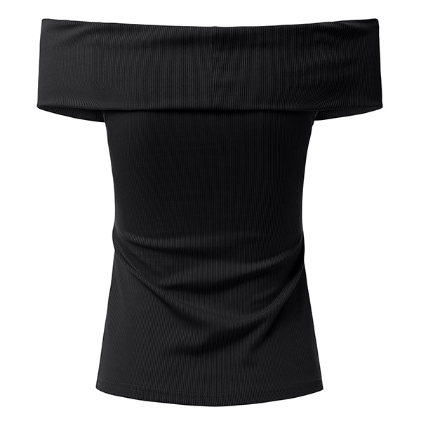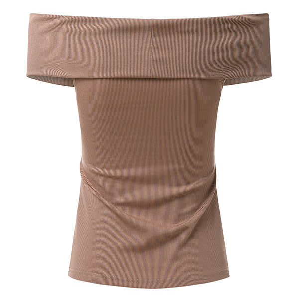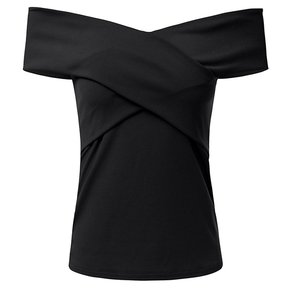 Sexy Off-shoulder Crossover Boat Neck Solid Color T-shirt