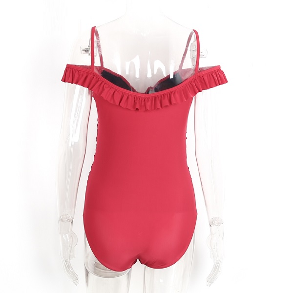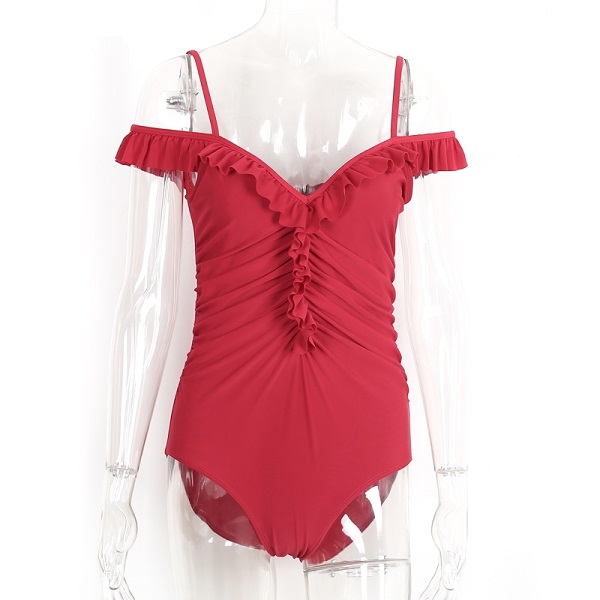 Easy to grab more attention on the beach with this one-piece swimsuit. Solid color style,with backless,deep v-neck and ruffle