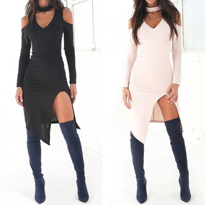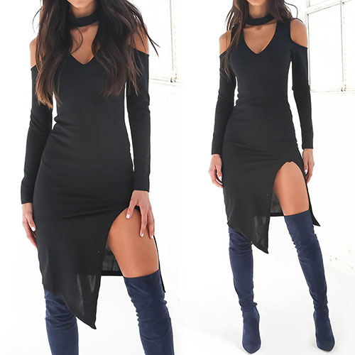 Its stunning details such as off-shoulder,deep v-neckline,slit hem and super fit silhouette make this dress so sultry. Plus,