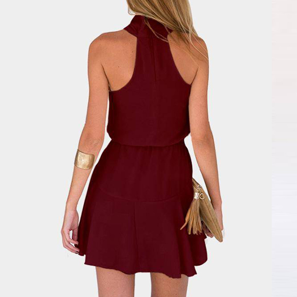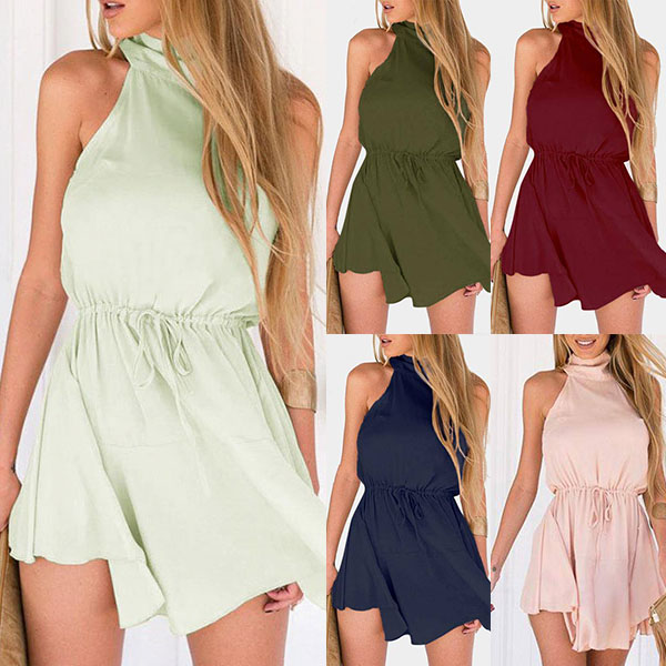 This dress comes with a solid color,simple yet elegant,while the off-shoulder and halter design can lend