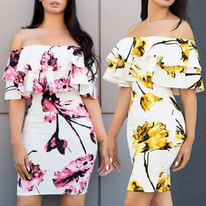 print design can give you a sweet and eye-catching look,while the dual-layer ruffle boat neck design is the