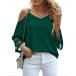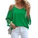 Sexy Off-shoulder Gauze Spliced Trumpet Sleeve Halter Top