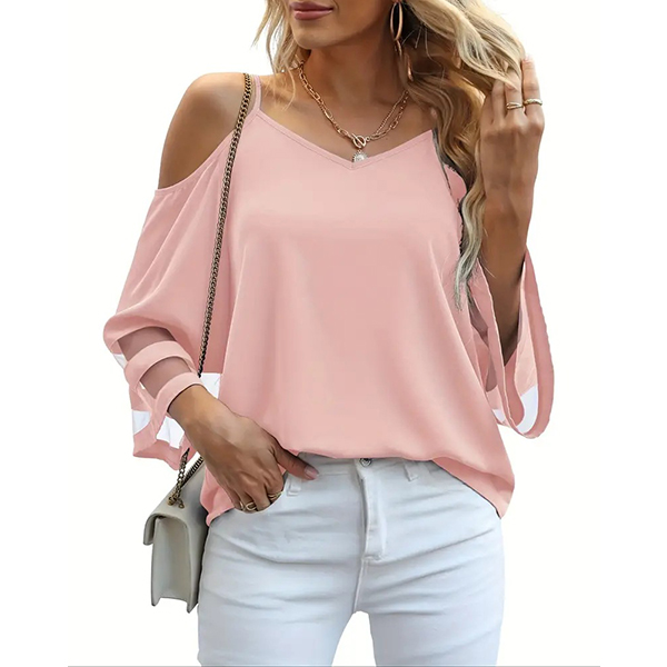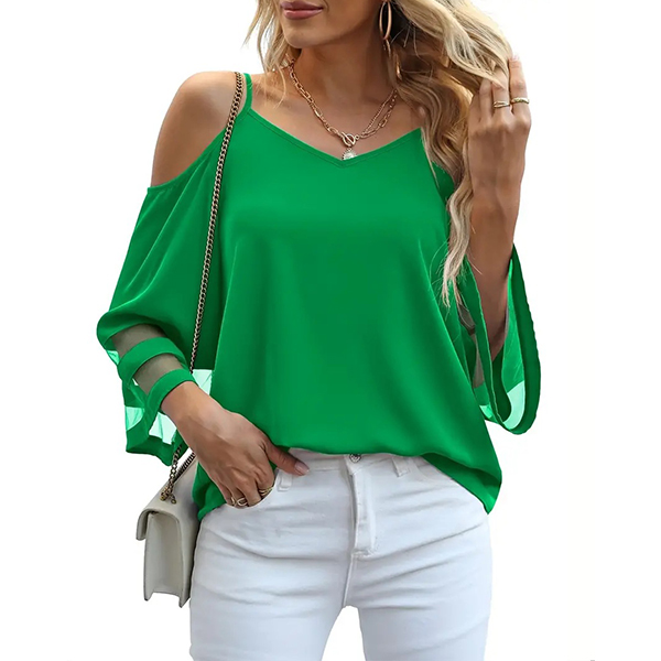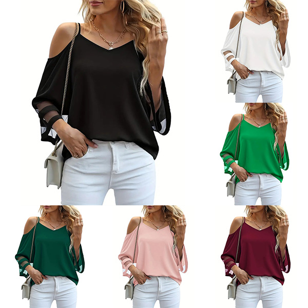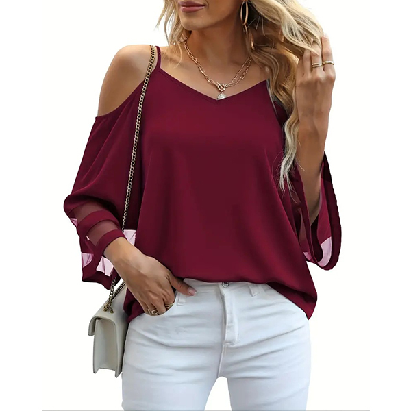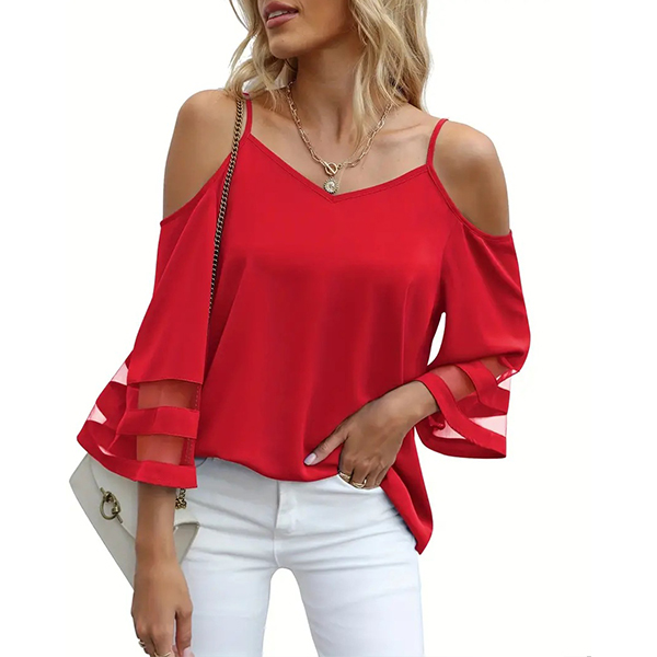 This sexy top will become a coveted staple in your weekends. Halter and off-shoulder design can offer you a flirty look,while the gauze spliced trumpet sleeve design will make this piece look more attractive. Attracted? Then invite it to your wardrobe.