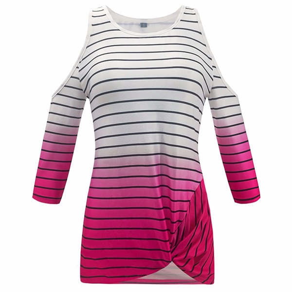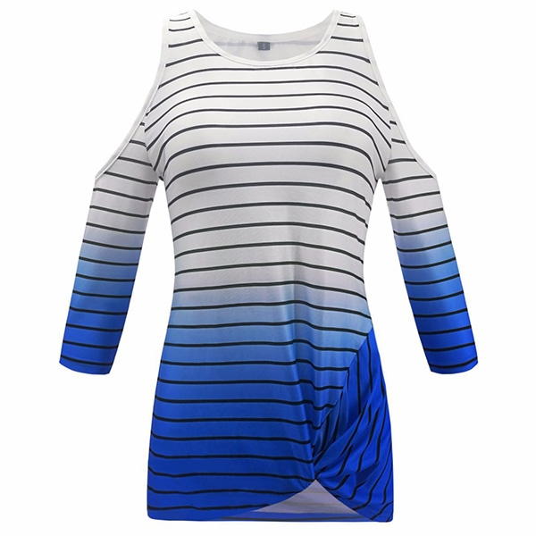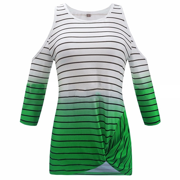 details like off-shoulder,half sleeve,striped element and contrast color design create this unique t-shirt.