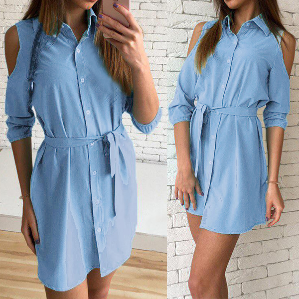 Bring your fashion style to a new level with the help of this shirt dress. Solid color style,finished with half sleeve,