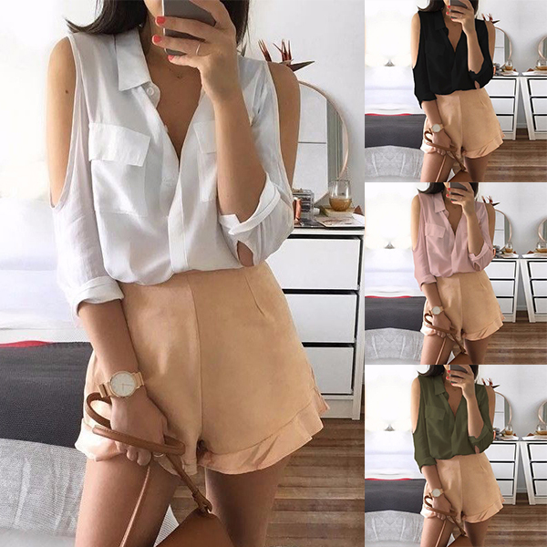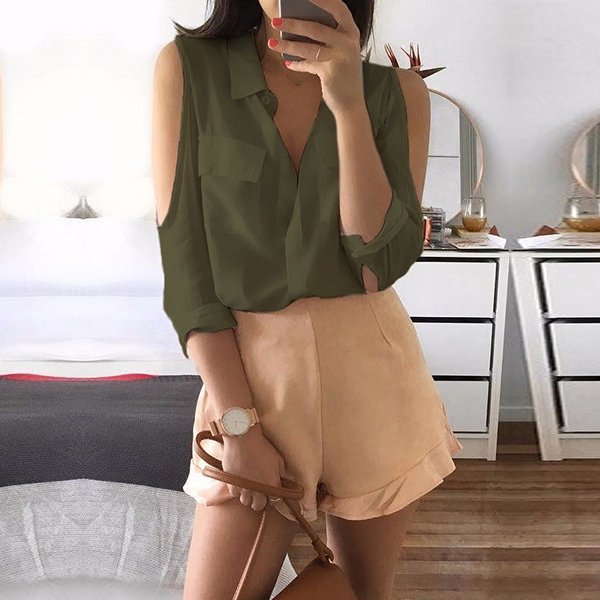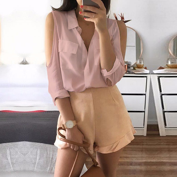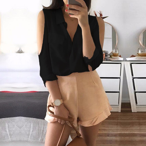 POLO collar and off-shoulder design,this shirt can make you look stylish yet sexy. No matter for your workdays