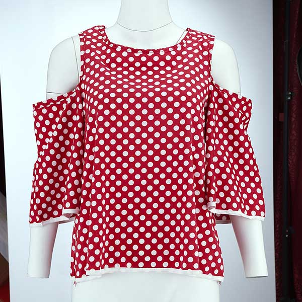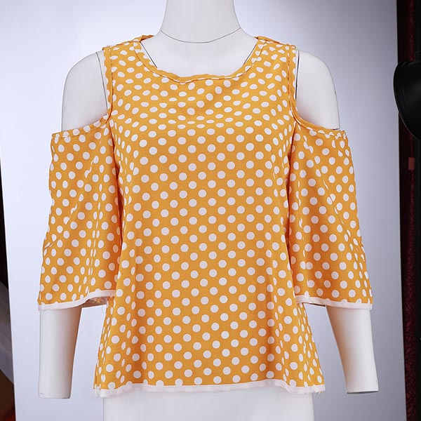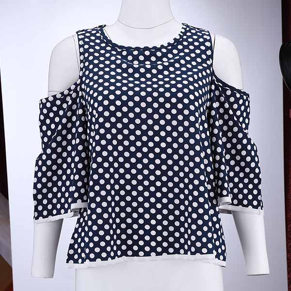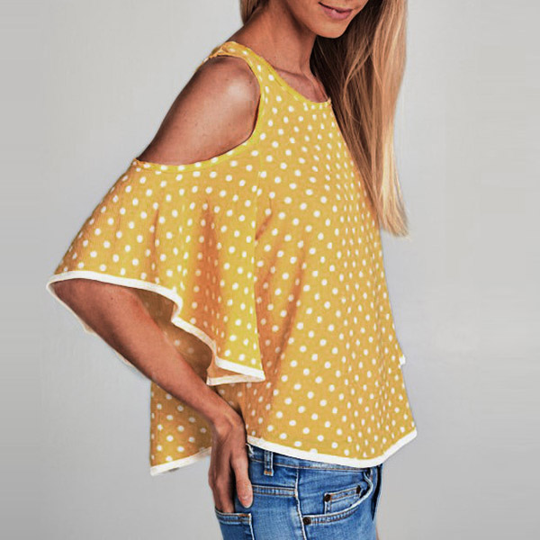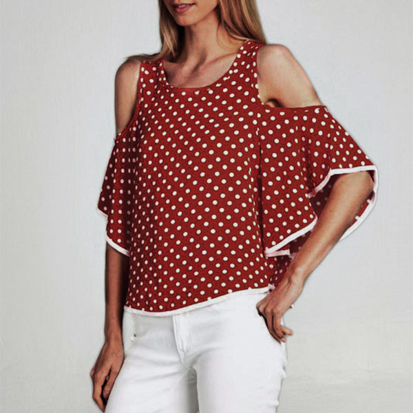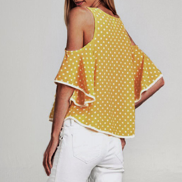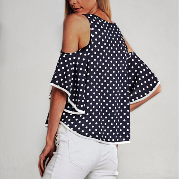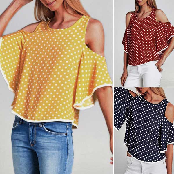 Dots element design makes this piece look so stylish and playful,while the off-shoulder and trumpet