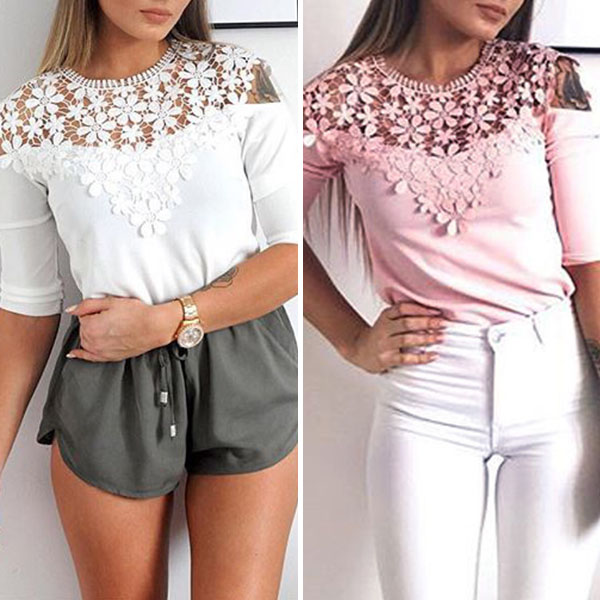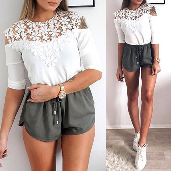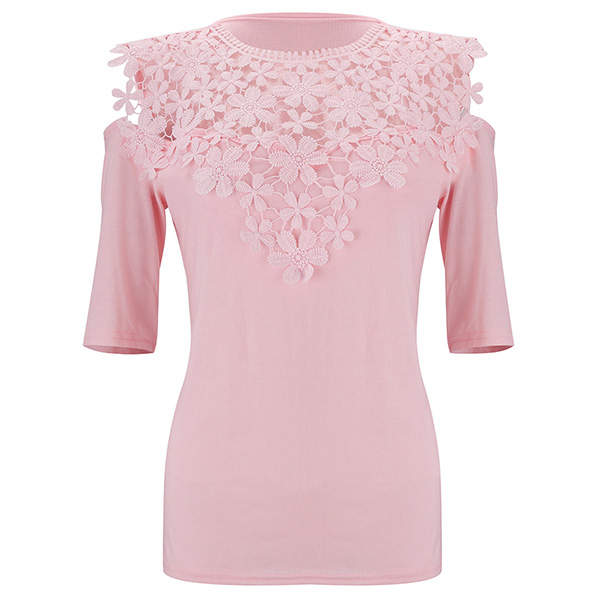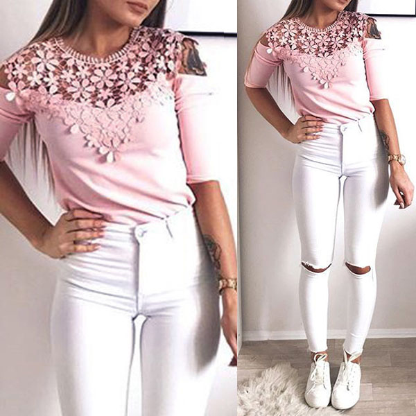 the off-shoulder,half sleeve and lace spliced design make it look very attractive.