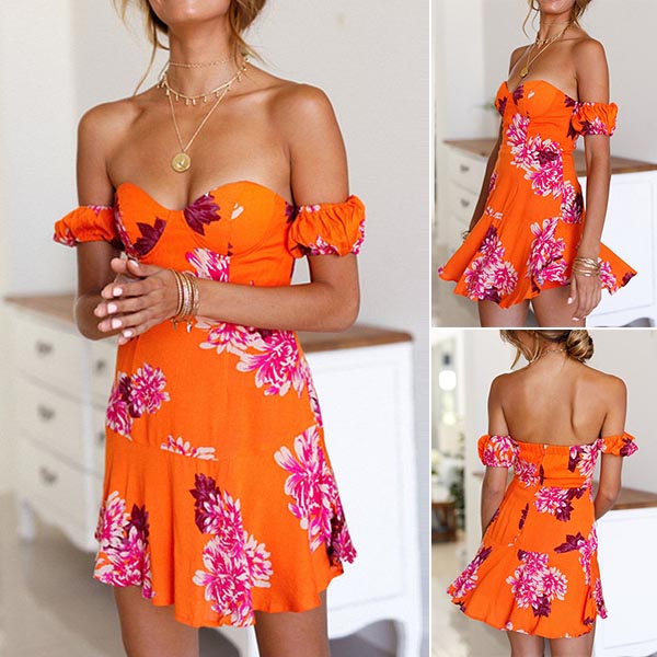 eye-catching floral print design make this piece look so attractive,while the off-shoulder design will