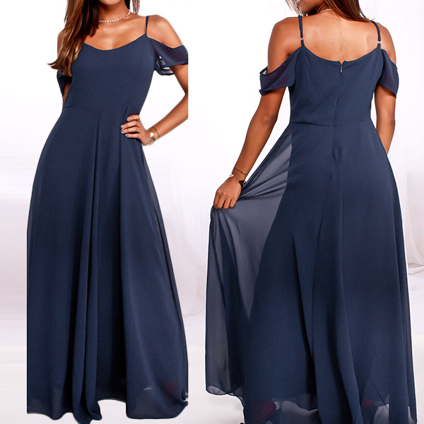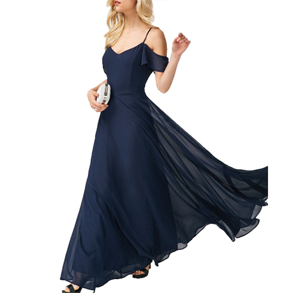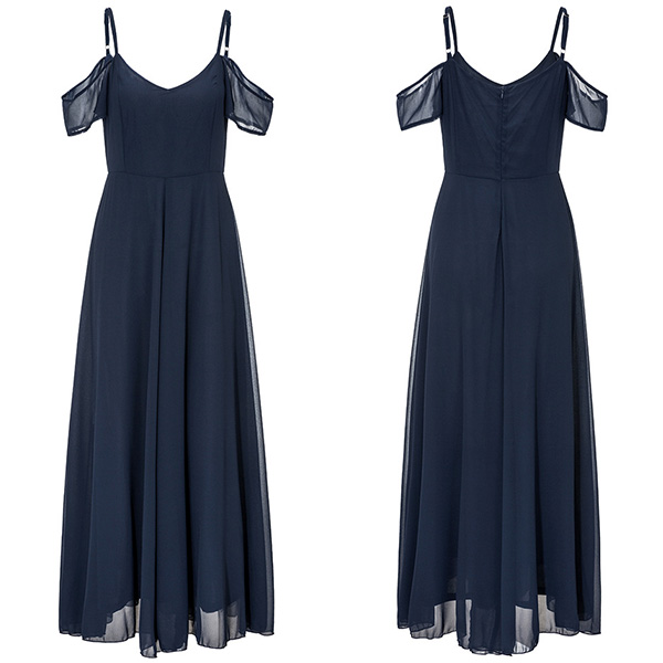 You look so elegant and charming when you throw yourself into this chiffon dress. The off-shoulder and