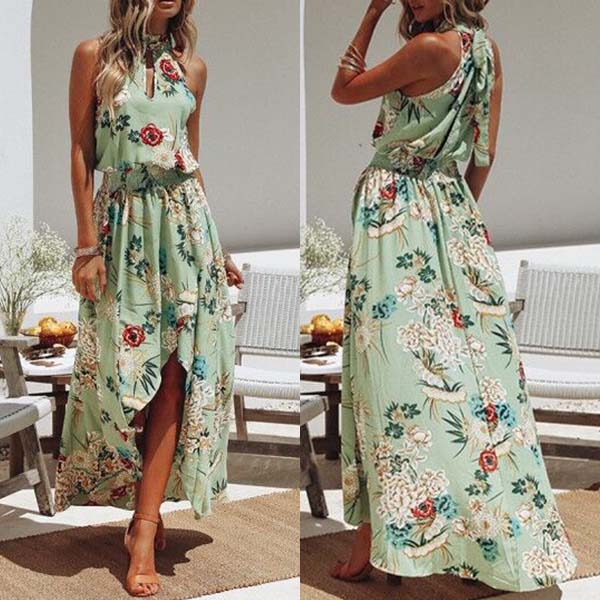 This dress comes with vibrant and eye-catching floral print,which can help you win more eyes.