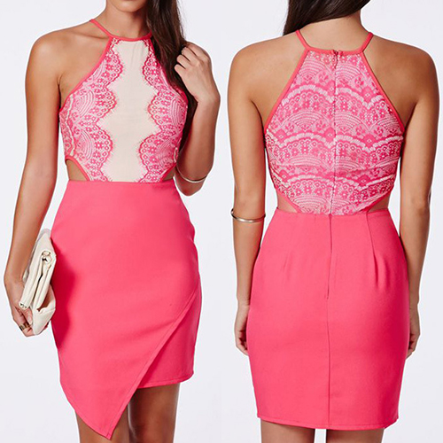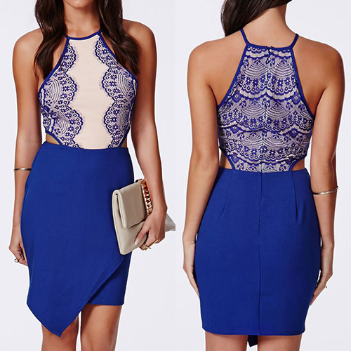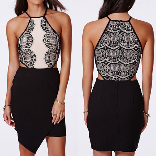 with off-shoulder,irregular hem and lace spliced design,this dress is sure to give you a sexy and sultry style.
