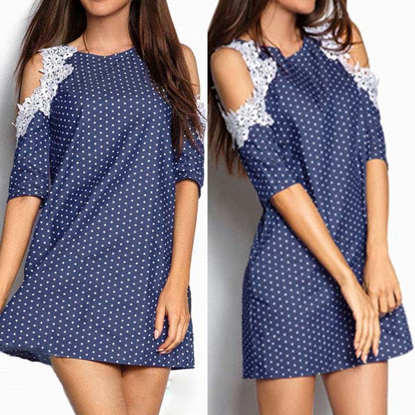 you this dress! The off-shoulder and lace spliced design can showcase your sexy and feminine side,