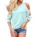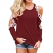Inject some sexy and feminine flavor to your weekend look with this t-shirt! The off-shoulder and lace spliced