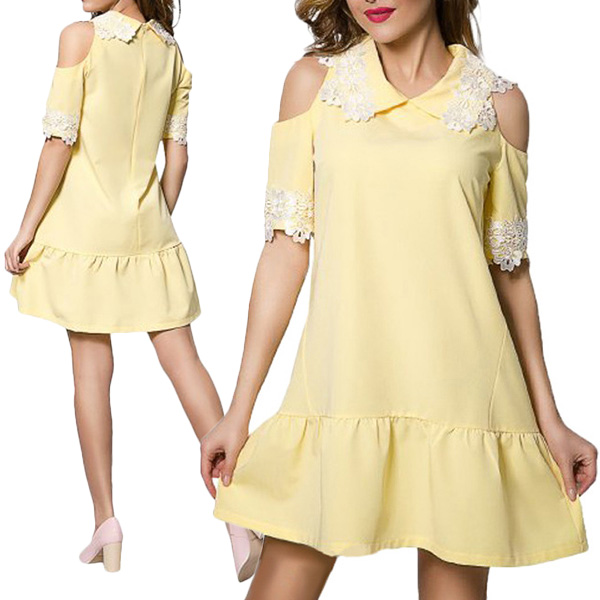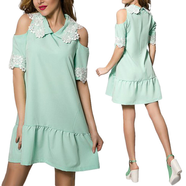 distinctive details like off-shoulder,lapel and lace spliced design make this piece look so attractive.
