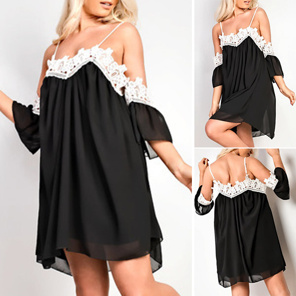 Exude your charming feminine appeal through this dress. Sling style,this of-shoulder and lace spliced