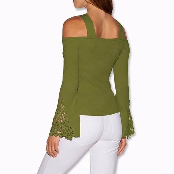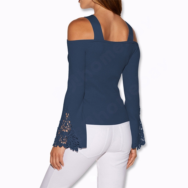 Solid color style,the off-shoulder,lace spliced and trumpet sleeve design make it look so attractive.
