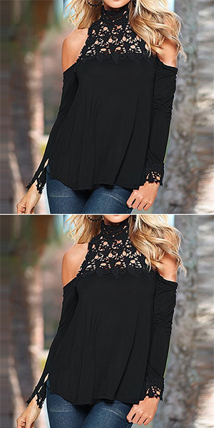 hollow out lace spliced design. Crafted from soft and cozy fabric,with long sleeves,
