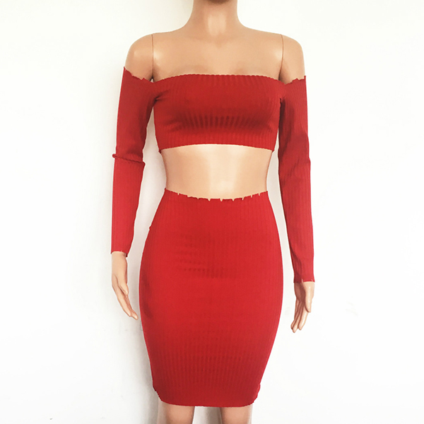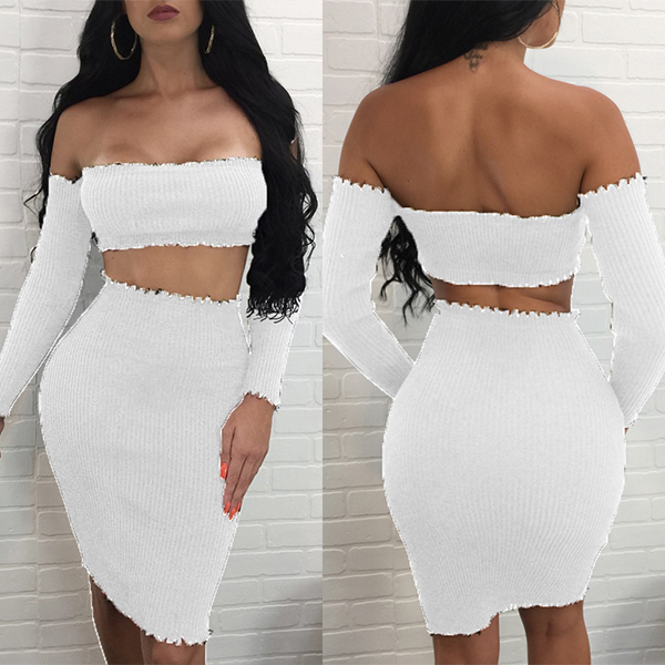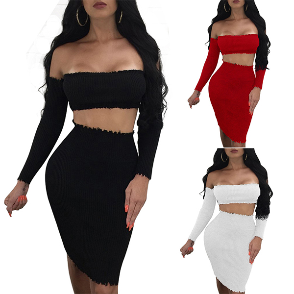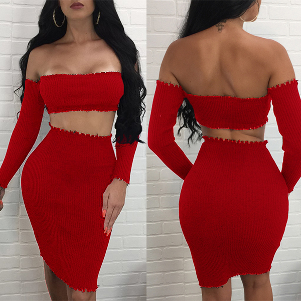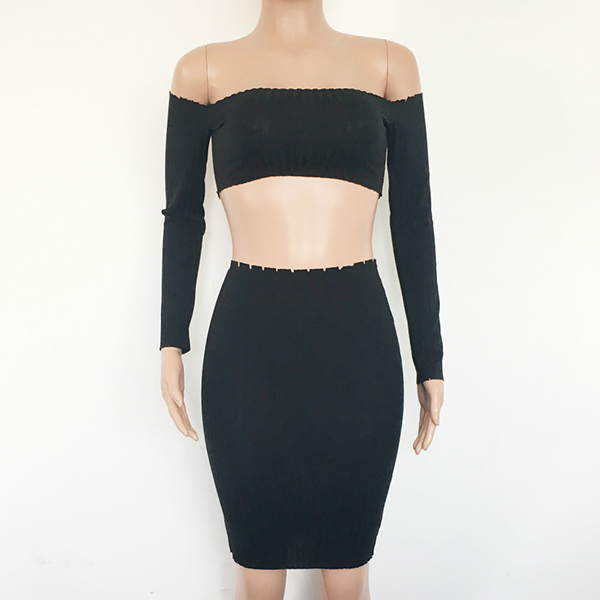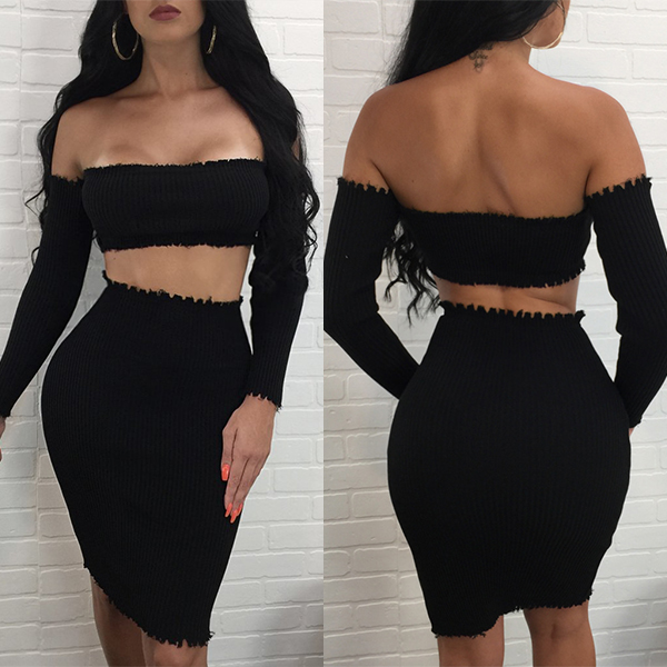 off-shoulder bandeau top and a high waist skirt,this two-piece set is sure to help you win more eyes. Paired with your sexy