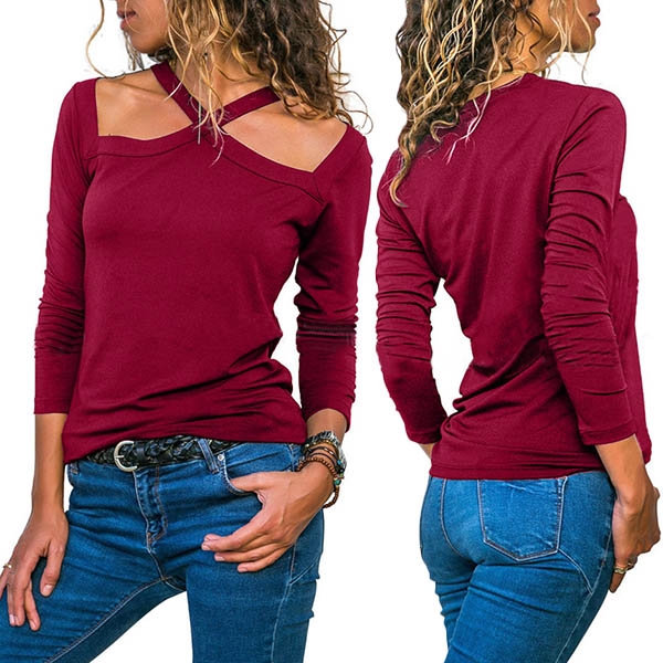 Combines of cozy and sexy flavor,this t-shirt can offer you a charming look. Boasts a solid color,