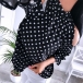 with off-shoulder,dots printed details and long sleeve design,simple,sexy yet stylish.You can pair with