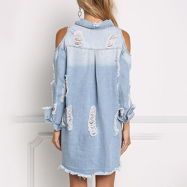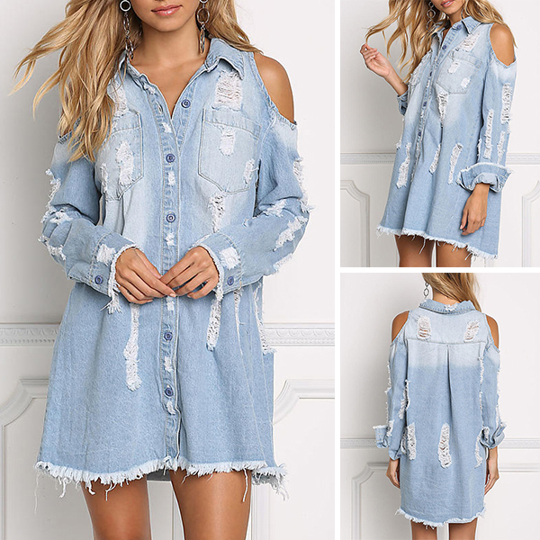 while the off-shoulder,frayed hem and ripped details will lend you a dash of sexy and feminine flavor. Dress it up