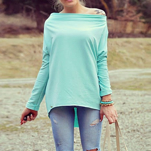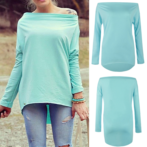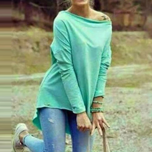 color style,designed with long sleeve,a high-low hem and soft fabric,whilst its off-shoulder design adda a dash of sexy flavor. Update your wardrobe with this t-shirt.