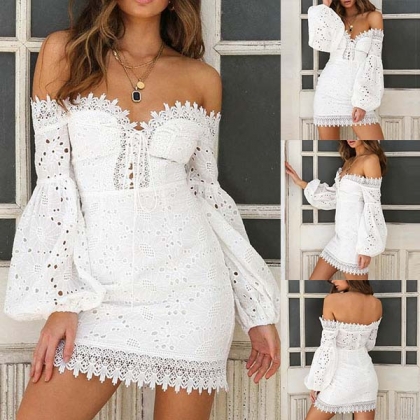 Your style cannot be outmatched when you are wearing this stunning dress. The off-shoulder boat