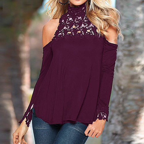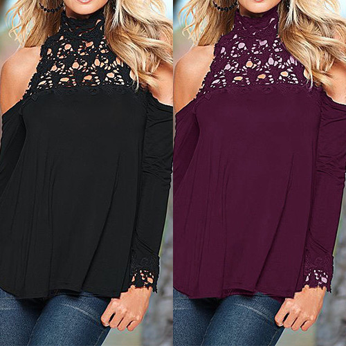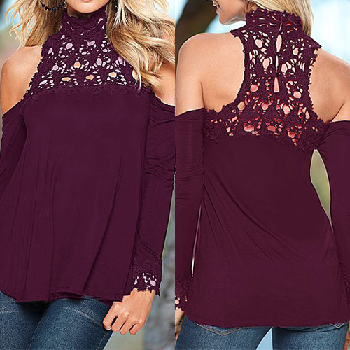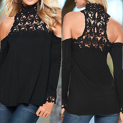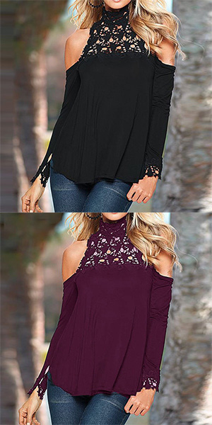 Such a chic and feminine tops! Its lace spliced and off-shoulder design design makes it look
