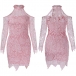elegant pink tone,outfitted with off-shoulder,mock neck,irregular hem and a fit silhouette,this lace dress can make