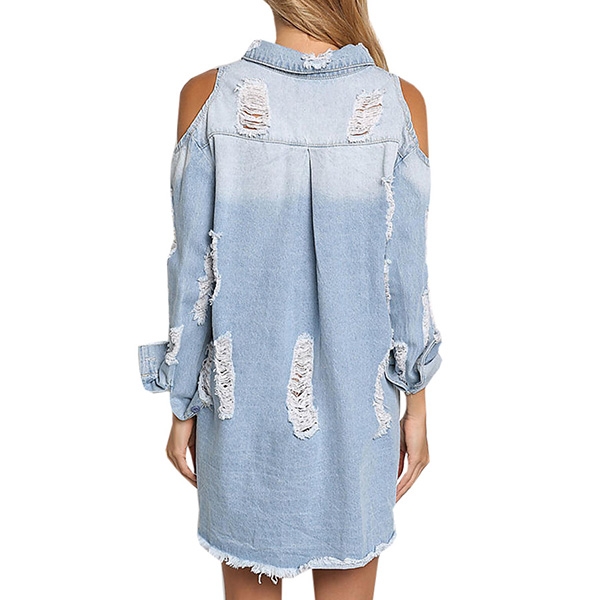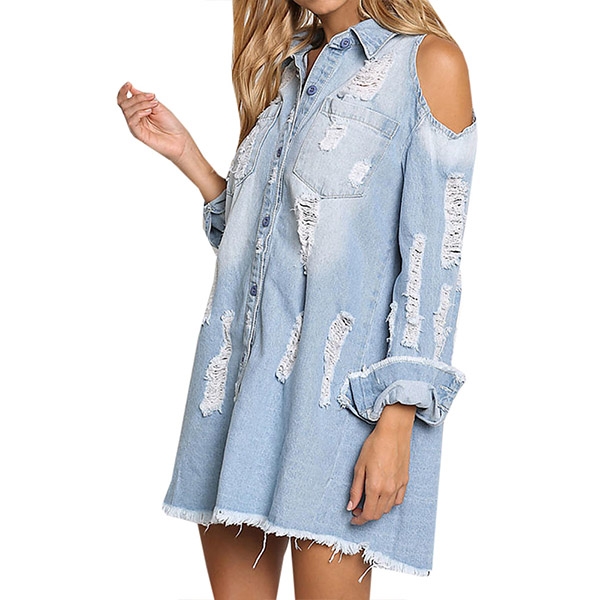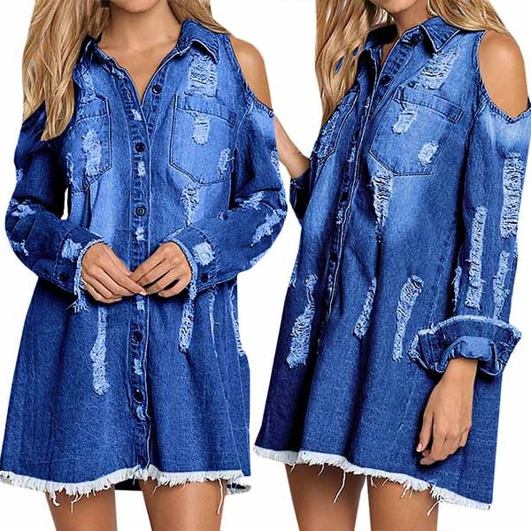 silhouette design can offer you a comfortable day,while the off-shoulder and ripped details will