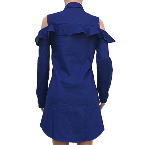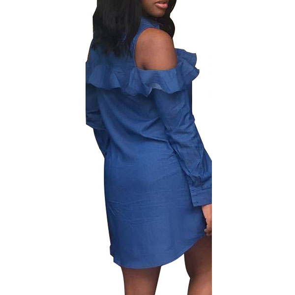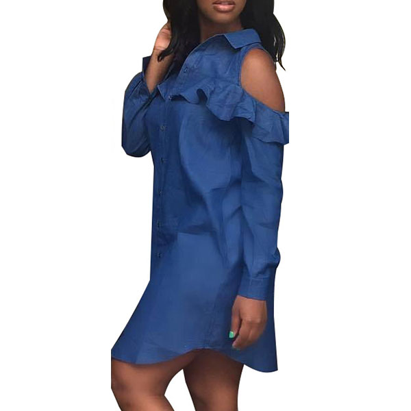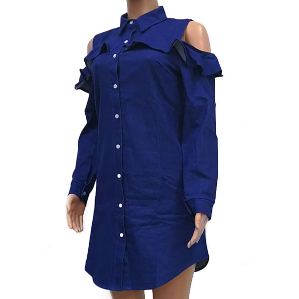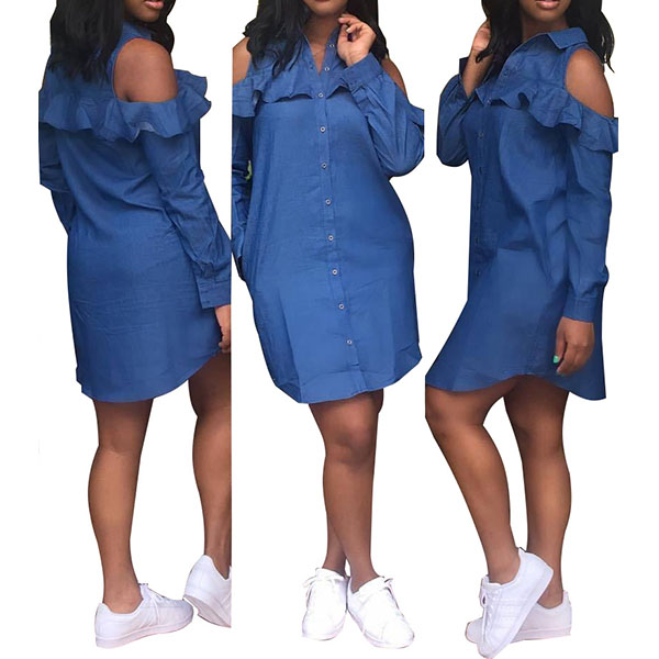 Enrich your wardrobe ensemble by adding this denim dress to it. Designed with long sleeve,POLO collar,of-shoulder and