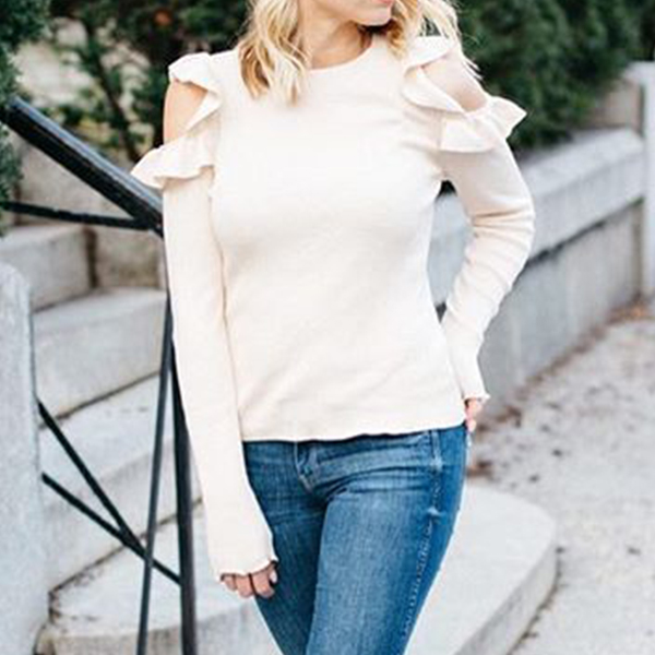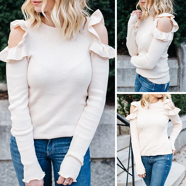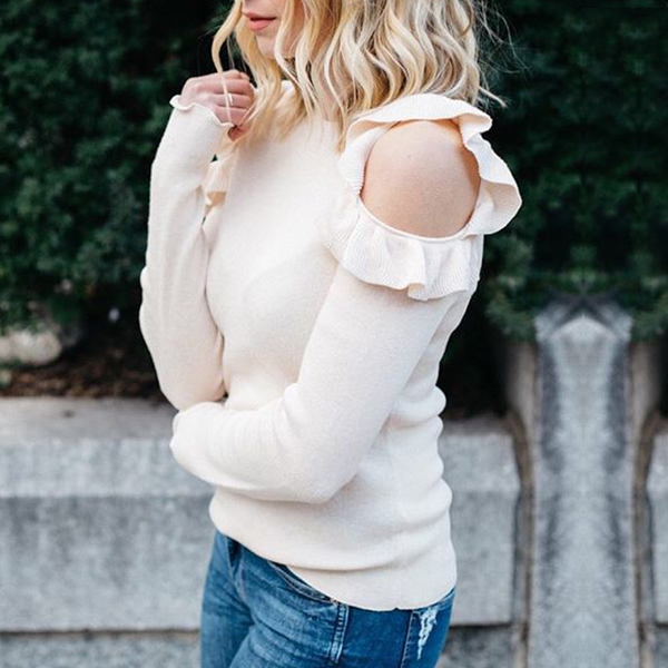 this piece can keep you comfy all day. What makes it look so appealing? We think it is the off-shoulder and ruffle design.
